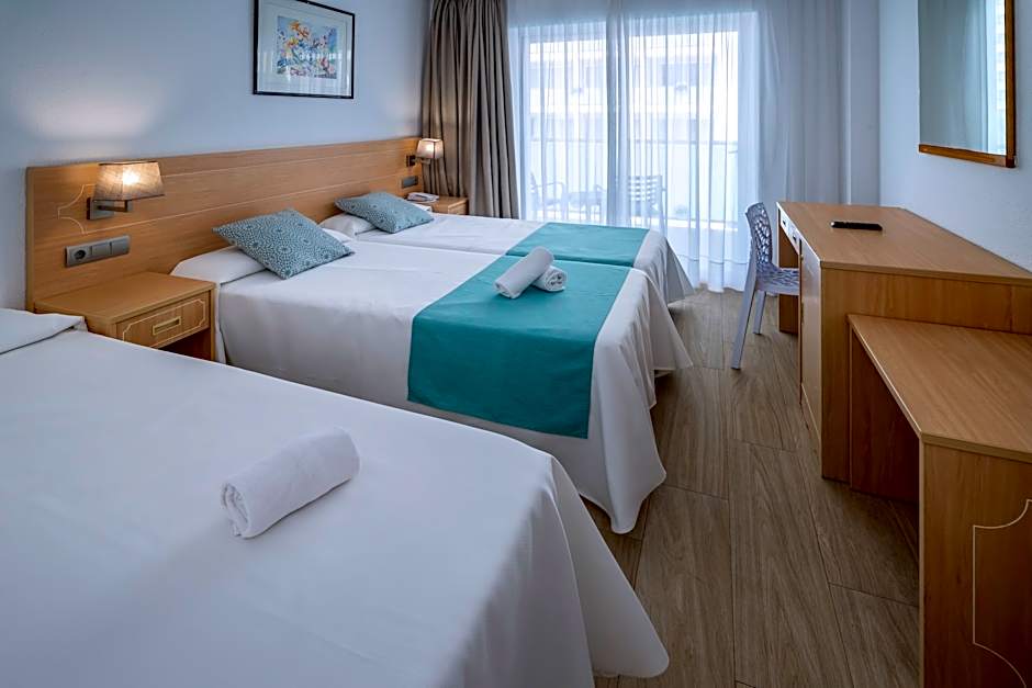 This quadruple room features a pool with a view. The spacious quadruple room features air conditioning, soundproof walls, a balcony with garden views as well as a private bathroom boasting a walk-in shower. The unit has 2 beds.