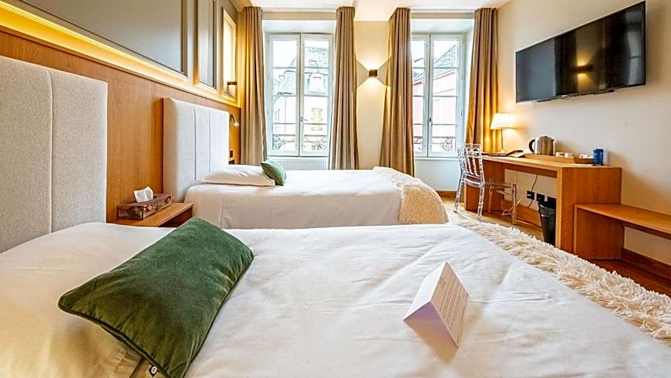The Logis Hotel De La Cote D'or offers a variety of rooms including Twin, Double, Quadruple, Single, and Triple rooms. Smoking is not allowed in any of the rooms. Guests can enjoy different bed sizes such as Twin, Double, and Queen, with accommodations ranging from 1 to 4 adults and 0 to 2 children depending on the room type. Room sizes vary from 161 sqft for Single rooms to 538 sqft for Quadruple rooms.