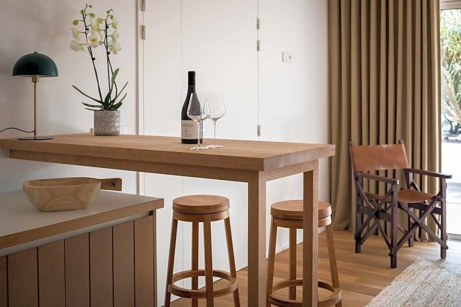 This suite features a panoramic view of the Hossegor marine lake, flat screen tv, sofa bed and a bathroom with a bathtub.