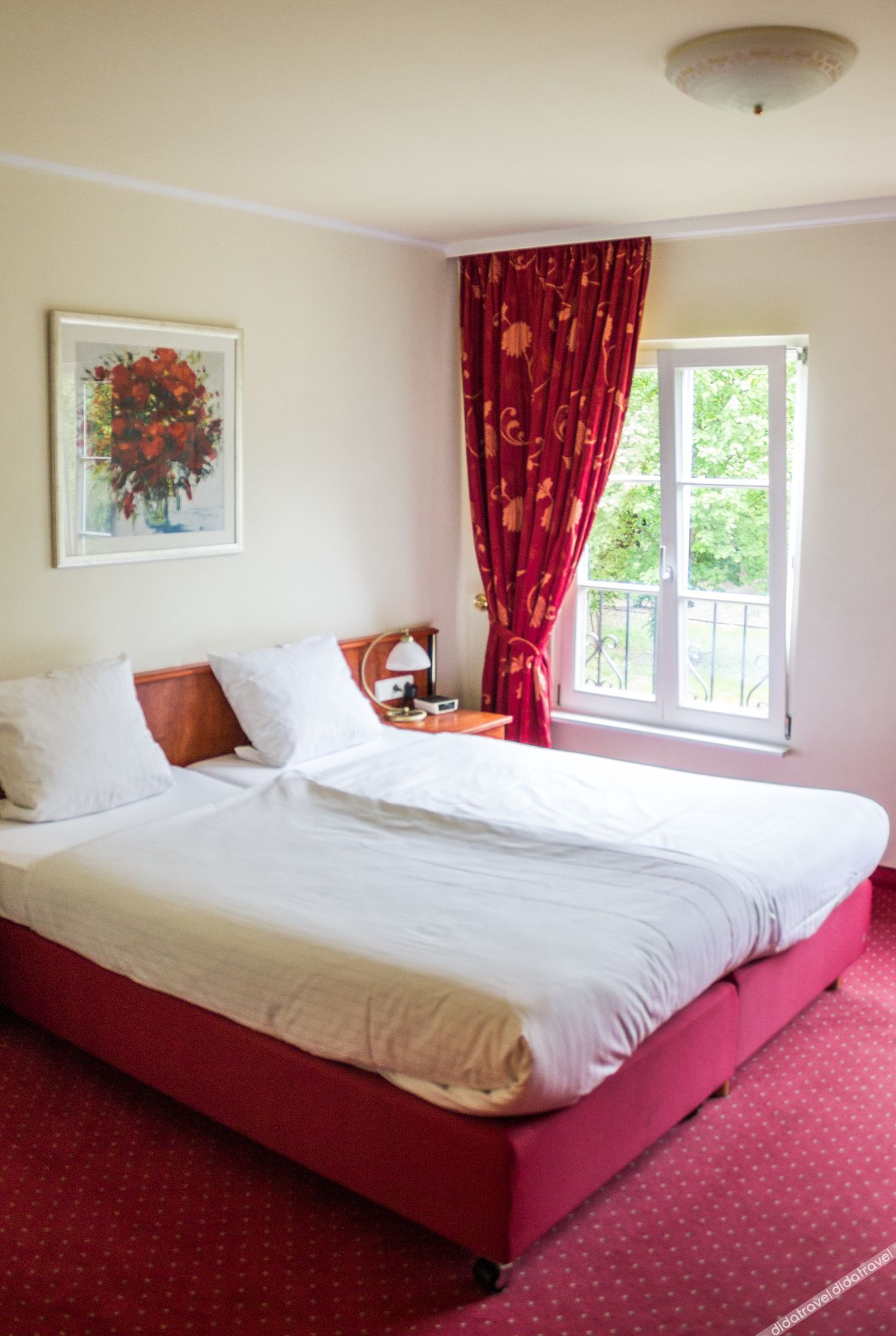 Beautiful setting. The staff (both check in and check out) at the reception were charming and helpful. Mr. Leibrecht appears to lead by example and was welcoming and friendly when we ran into him on the morning we checked out. Even the cat, Blackie was friendly and charming. The whole team puts you at ease. I would definitely look at booking the upgraded rooms where possible as the Chateau is stunning and in my opinion would have provided a better experience if we had booked rooms at the Parc. Review the Chateau's website as it clearly provides an informative view of the types of rooms available across the different buildings. I enjoyed reading about the history of the Chateau and the guests. There is plenty of parking is available on the grounds. The Chateau is within a short drive to an excellent bakery and café which also had friendly welcoming owners and staff.