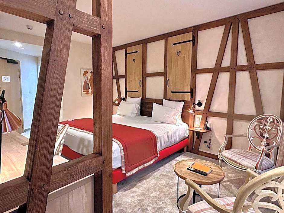 These suites are an appeal of volume, space and Alsatian charm, and will meet all your requirements. You will be impressed by the 15 feet high with beautiful beams. The unique ambiance of these duplexes will make you feel right at home thanks to a cozy living room and a mezzanine bedroom. The sofas in the living area can be converted into beds if your children join you. A true Alsatian cocoon features two televisions, a mini-bar, a courtesy tray with a kettle and Nespresso machine, and bathrobes.