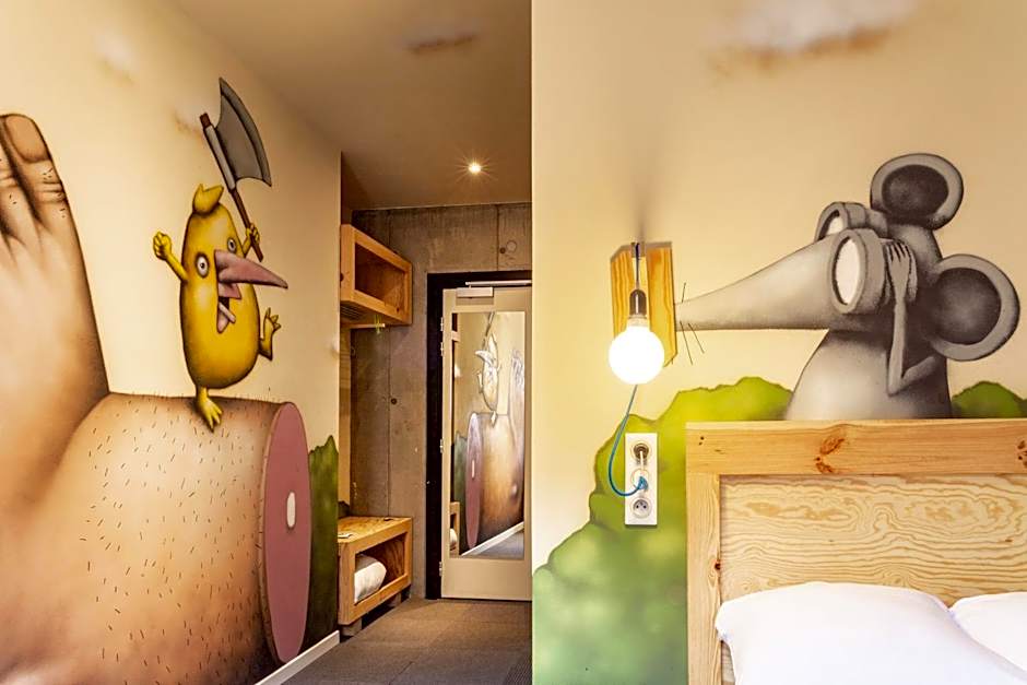 It took me a bit to realize the ambiance of the hotel, but then I loved it! It was an amazing find! Not only was it not like a “corporate “ hotel, the details put into the design were exceptional! From the artwork on the walls (and wow the garage), the names on the doors, the stickers on the soap, and the hilarious “Panic Book”, everything was fantastic! The beds were just ok, but all was very, very clean. The staff was so very helpful, and really made it even more exceptional!