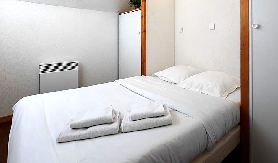 Standard apartment for up to 4 people. Equipped kitchen, Living room with sofa bed, television, 1 Bedroom with double bed, Bathroom & separate WC, North facing balcony. Find out more: The living room area has a sofa bed and a TV, storage space. Fully equipped kitchen: Dishwasher, Refrigerator, Electric hob, Microwave oven, Filter coffee maker, Kettle, Toaster, Saucepan, Crockery (no food condiment). This accommodation includes a master bedroom with double bed + storage. Bathroom with bath, hairdryer, separate WC. Household equipment: Vacuum cleaner, Broom, Broom, Starter kit for home maintenance. The cleaning must be done before your departure (Possibility to purchase the end-of-stay cleaning service in addition at the counter). Balcony facing North. Parking in the outdoor aerial car park, free access subject to availability (Covered parking available at an additional cost at the counter). For your comfort : - Bed and bathroom linen are provided on arrival. - Bakery service and take-out breakfast (On order at the counter). - Sale of ski lift passes every morning at Reception. - Secure individual ski locker.