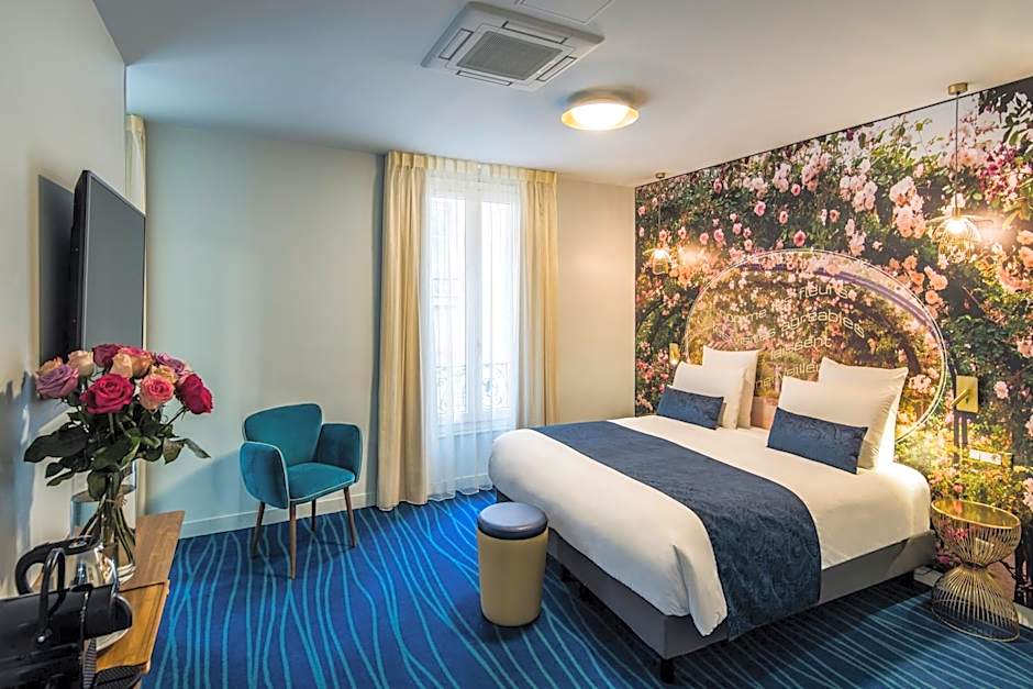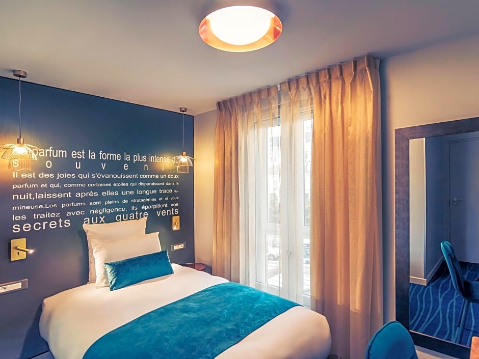Everything! It was beautiful from the moment we walked in - the decor was so visually appealing and the perfume theme and aroma smelt wonderful. The receptionists the whole time were so helpful and polite and their English was fantastic (as my French is so rusty it helped a lot). We were told that our room had been upgraded which was a lovely touch! The room was fabulous, beautifully decorated, very clean and the beds were so comfortable! The bathroom was very spacious and had a bath with shower and a separate shower cubicle too! They had shampoo, conditioner, shower gel and body lotion in pump dispensers on the walls to use so this was very handy. In the room there was a kettle with a choice of 2 tea bags and 2 instant coffees but no milk, and a coffee machine with 2 pods to use which was lovely but a limited choice. There was a little desk area/wall shelf that wasn't big enough to do any work at (if that is what you need whilst there) but it didn't affect our stay or needs. The TV is huge and of great quality but we couldn't get Netflix to work and the TV Internet link to cast to the TV from our mobiles also didn't link up but these didn't bother us but it's worth mentioning. There was a small wardrobe with a mini fridge/bar with a small selection of soft drinks, a small safe and a hairdryer inside to use. The breakfast area downstairs looked beautiful too but we didn't eat there. There were tea, coffee and water available to all guests even if you didn't have the breakfast. Overall a totally wonderful stay and I would 100% recommend it to anyone wanting to stay in the Suresnes or Longchamp area and I would definitely stay again 😊