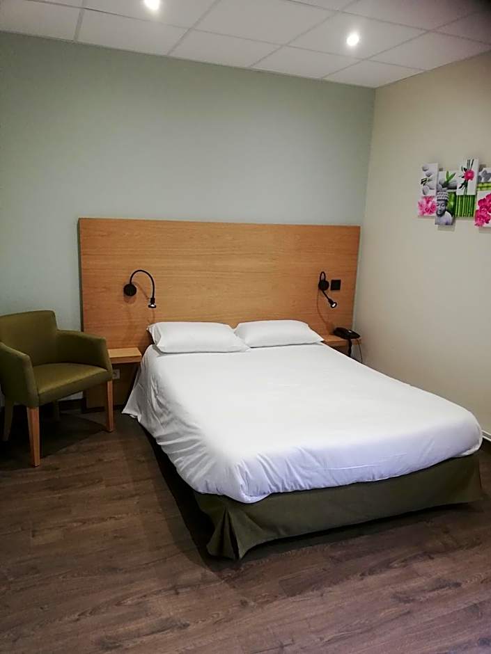 OK, this is a two star hotel so don't expect the Ritz. The bedroom was great, more than big enough and the bathroom was spotless and looked pretty new. My room overlooked the main room but with the window closed you couldn't hear anything. The location is superb, directly in front of the train station and there is off road free parking. There is a supermarket just two minutes walk away. The breakfast was fine and buffet style so eat as much as you want. A great find.