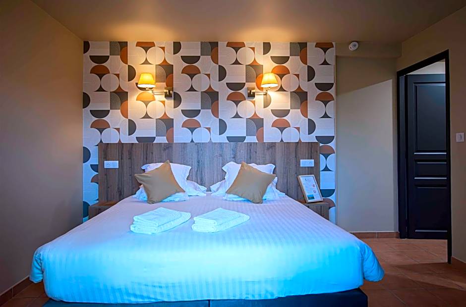 Having spent 4 days riding motorcycles around France it was a pleasure to find this Hotel in the middle of nowhere and so quiet and peaceful. The staff were very welcoming and spoke a smattering of English which helped with our effort at speaking French. The restauraunt was open and the bar area on the terrace made an excellent starting point. The food was exquisite, by the far the best we had experienced during our trip The rooms were huge, bed was massive, bathroom walk in shower was superb