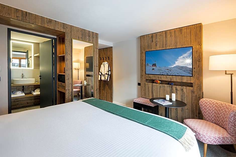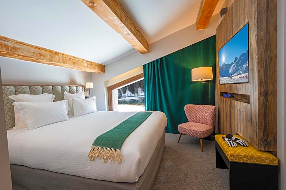 Tetras Lodge by Les Etincelles offers various types of rooms including Superior Double Rooms, Double Rooms with Village View, Double Rooms with Mountain View, Junior Suites with Village View, and Junior Suites with Mountain View. All rooms are non-smoking and accommodate two adults and one child. The sizes of the rooms range from 215 sqft to 355 sqft. The beds in the rooms consist of a combination of King size beds, Twin beds, and Sofa beds.