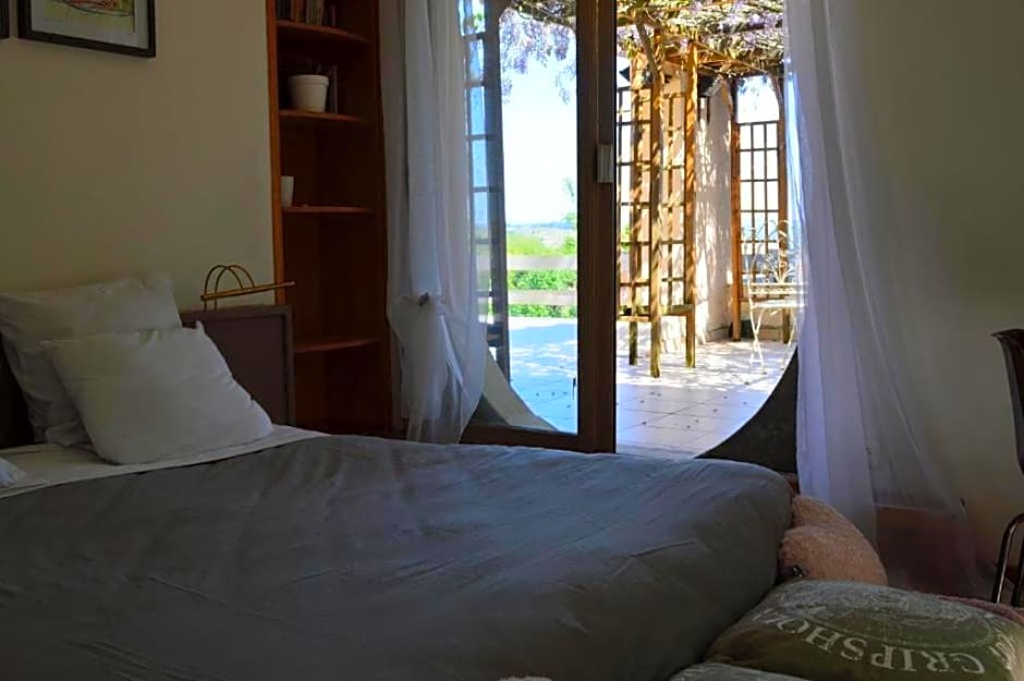 Fabrice is extremely friendly and welcomes you in his home like a friend. You must have dinner there, not only is the food delicious but the conviviality of sitting altogether around the table is worth the experience by itself. We came with our two toddlers and everyone was very accommodating with them dining with us and playing around. The house is a beautiful architect house, on which Fabrice works continually on improving. The bedrooms were very comfortable, the AC was welcome, the shower was super cozy and the view from the terrace was peaceful. Even though the house is on top of a steep hill it's only a 5-minute walk to town.