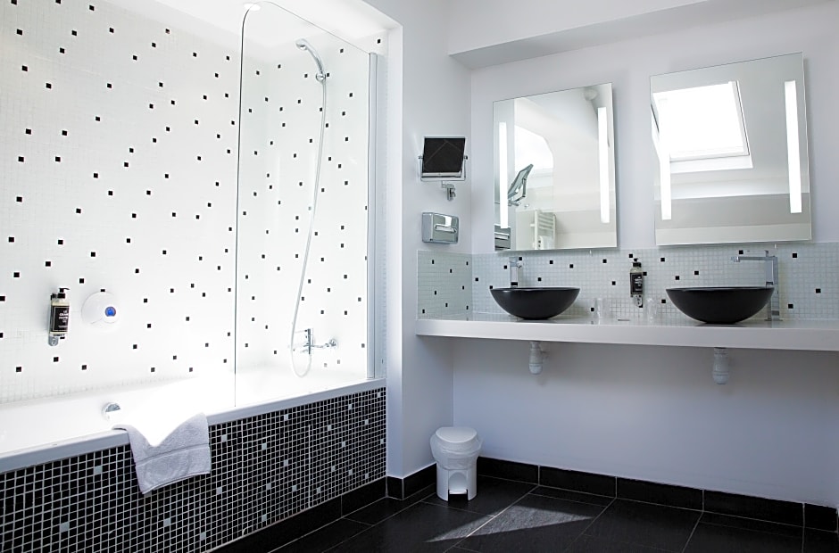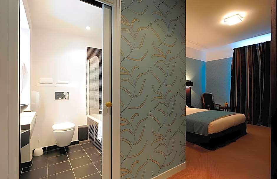 Good disabled facilities in the bathroom, both the bathroom and bedroom were very spacious and comfortable. Good sized bed, and a bonus to have tea and coffee making facilities in the room. A very good location withing the centre of Tours. The hotel decor was nice and very clean. The price for the pet and the parking was very reasonable.