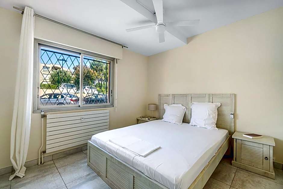 The location was perfect: near the supermarket, bakery, close to the beach train station. It is a great alternative if you do not want to stay in a hectic city but more calm as Golf Juan. Everything is within 15 minutes walk and you can take the train to Cannes or Antibes which takes less than 10 minutes, no need to take the car. If you like to tennis and to swim then this is the place to stay! Also the staff are very friendly!