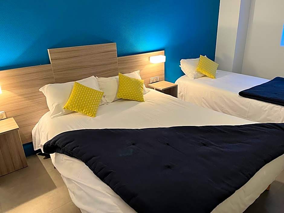 The hotel offers a Quadruple Room with Shower, which accommodates 4 adults and has 2 Twin beds and 1 Double bed, with a size of 172 sqft. Smoking is not allowed in this room. Additionally, there is a Standard Triple Room that accommodates 3 adults with 1 Twin bed and 1 Double bed, also measuring 172 sqft and not allowing smoking.