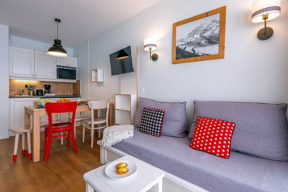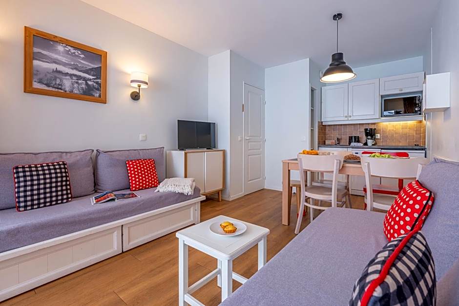 This studio features a living area with two single sofa beds and a sleeping alcove with 2 bunk beds. It has one independent bathroom with a bath or a shower. The fully equipped kitchenette opens on the living area. You are kindly requested to clean the kitchenette area before departure.