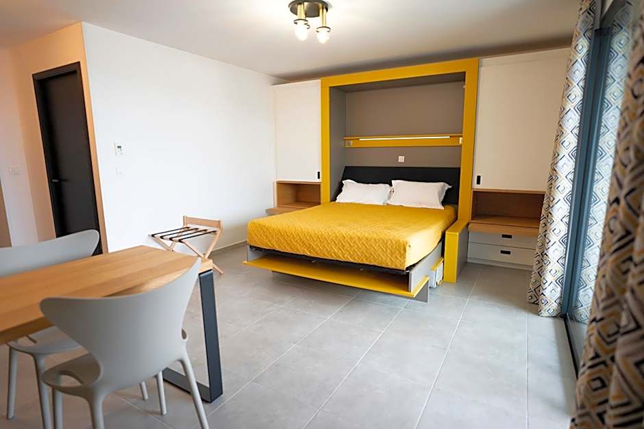 Wonderful place for a quiet vacation. Everything is new, clean and of high standard. The pool is excellent and the shared barbecue is a great plus. The apartment was comfortable and spotless clean. The folding sofa can be stored away each morning. Kitchen is well equipped. I highly recommend.