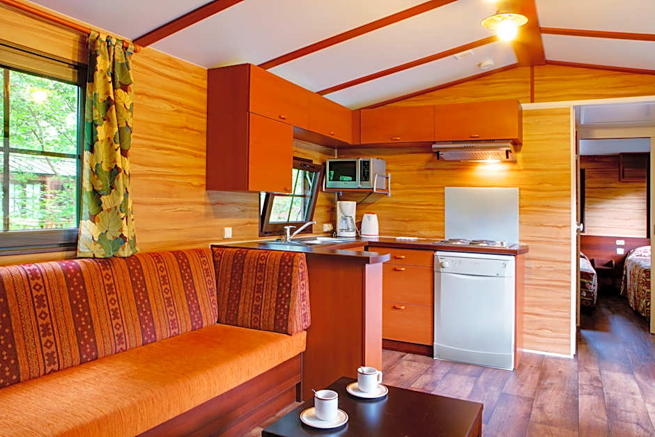 Great cabins which had everything we needed for our 3 night stay. Towels, shampoo, soap and shower gel. The cleaning pack whilst basic was adequate. The location is perfect for Disneyland Paris and we chose to use Ubers which proved to be more cost effective for us and only an 8 min journey to Disney. We stayed in the Big Bear Trail which was only a 5 min walk from the main hub but Ubers picked up and delivered us direct to our cabin.