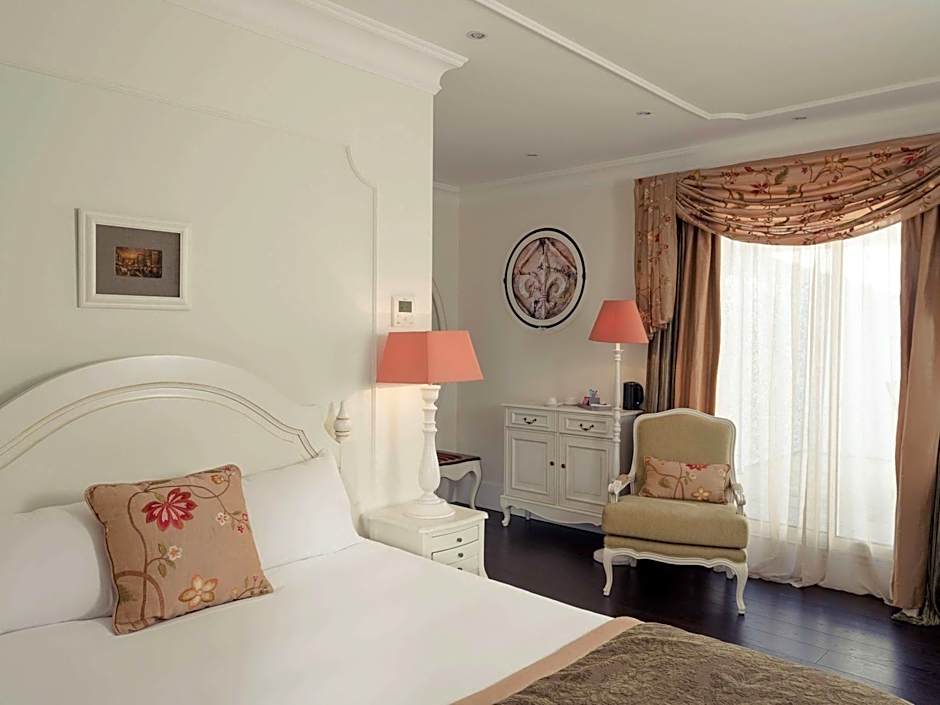 Classic Room on the river side with terrace and 1 double bed is 269 square feet and includes a double bed 131-150 width plus desk, satellite tv , hairdryer, tea and coffee making facilities , safe, bathrobes, and slippers.