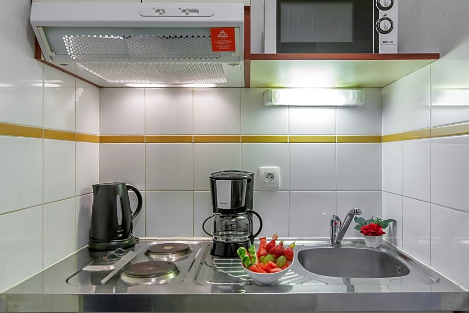 Appart'City Lyon Villeurbanne offers Double Studios with 1 double bed for 2 adults and 1 child, Twin Studios with 2 twin beds accommodating the same number of guests, and Apartments featuring 1 double bed and 1 sofa bed suitable for 4 adults and 3 children. All rooms are non-smoking and vary in size from 194 sqft to 377 sqft.