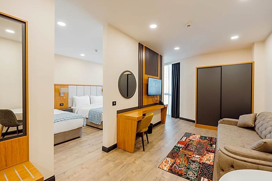 This suite includes 1 living room, 1 separate bedroom and 1 bathroom with a walk-in shower and free toiletries. This suite is air-conditioned and has a seating area with a flat-screen TV, soundproof walls, a mini-bar, a tea and coffee maker, as well as a dining area. The unit has 3 beds.