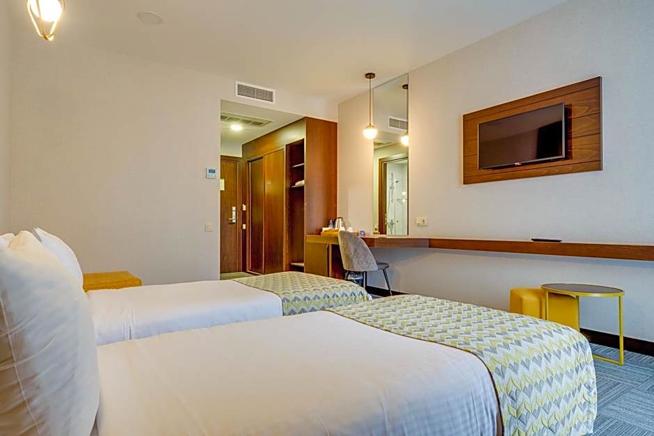 Providing free toiletries and bathrobes, this twin room includes a private bathroom with a shower, a hairdryer and slippers. The air-conditioned twin room provides a flat-screen TV, soundproof walls, a mini-bar, a seating area as well as city views. The unit offers 2 beds.