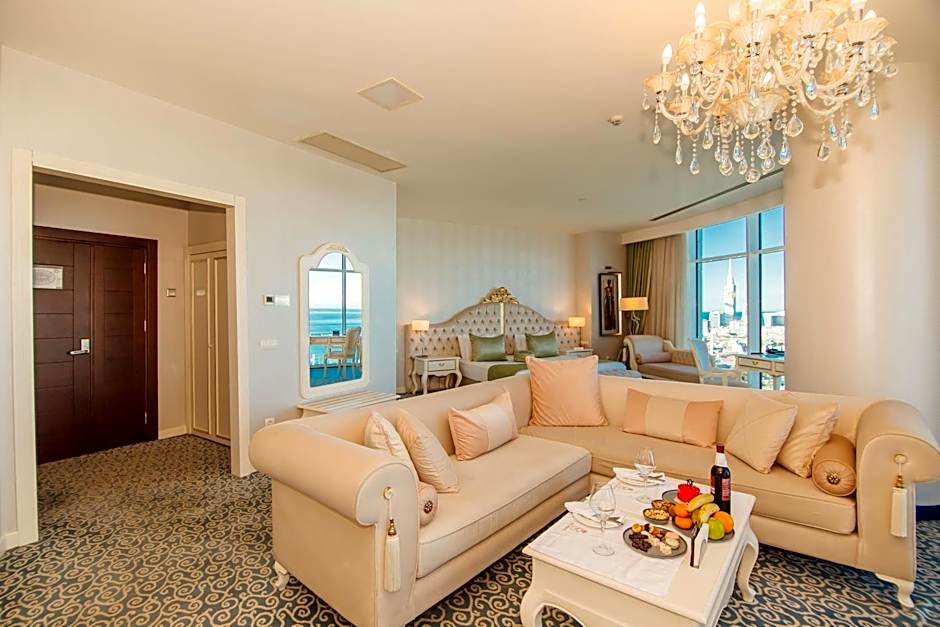 The fireplace is a top feature of this suite. Featuring free toiletries and bathrobes, this suite includes a private bathroom with a walk-in shower, a bath and a hairdryer. The spacious air-conditioned suite features a flat-screen TV with satellite channels, soundproof walls, a mini-bar, a tea and coffee maker as well as sea views. The unit has 2 beds.