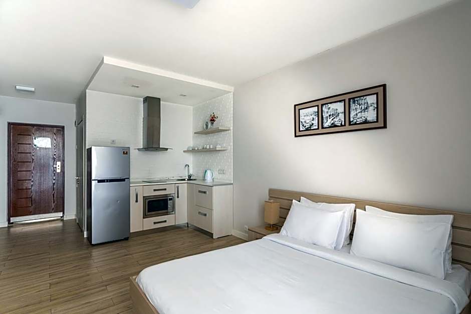 The hotel offers Studio Apartments with Sea View, which are apartments with a size of 366 sqft. Smoking is not allowed in these rooms. They can accommodate 3 adults and 1 child and have 1 sofa bed and 1 king size bed.