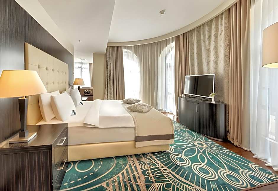 Il Crowne Plaza - Borjomi vanta una varietà di camere e suite, ognuna insonorizzata e climatizzata per il tuo comfort. Goditi splendide viste sul fiume dal tuo balcone e approfitta della posizione privilegiata dell'hotel vicino al centro città. Con i suoi lussuosi servizi e un servizio eccellente, il Crowne Plaza - Borjomi è la scelta perfetta per i viaggiatori più esigenti in cerca di un'esperienza davvero memorabile.