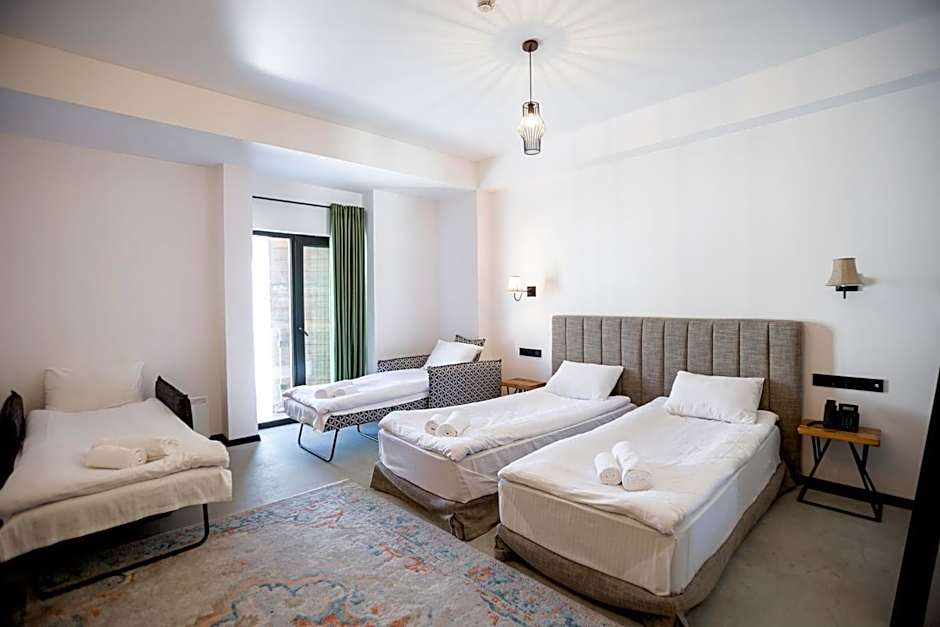 Room options span Budget Double Room, Standard Room, DoubleOrTwin Room, Superior Mountain View, Room With Mountain View, Standard Family, Triple Room Mountain View, and the spacious Family Suite. Mountain-view varieties include the 592-square-foot Family Suite and other layouts designed to suit different party sizes, while a sun deck and terrace invite lingering over Gudauri’s alpine scenery.