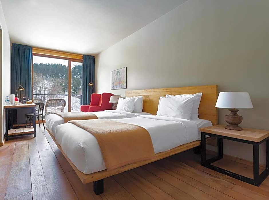 This spacious room comes with a sofa, mini-bar, ottoman and wardrobe. Guests can enjoy the forest view from their room.