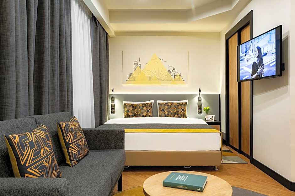 Each 31 sqm 1-Bedroom Apartment is cleverly designed to cater to a pair of traveling couples or a business group of four. It is fitted with a fully-equipped modern kitchenette, room with a double bed, private bathroom and well-partitioned living and dining areas with a double pull-out sofa bed.