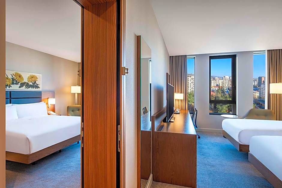 En cuanto a alojamiento, el hotel ofrece una variedad de tipos de habitaciones para satisfacer tus necesidades. Desde la espaciosa y accesible Habitación King con características de Accesibilidad para Personas con Movilidad Reducida hasta la elegante Suite Junior King, hay una habitación para cada viajero. Ya sea que viajes solo, en pareja o con la familia, el [Hilton Garden Inn Tbilisi Chavchavadze] tiene el tamaño de habitación perfecto y los arreglos de ropa de cama para garantizar una estancia cómoda. Así que siéntate, relájate y disfruta de las impresionantes vistas a la montaña y a los lugares emblemáticos desde tu habitación.