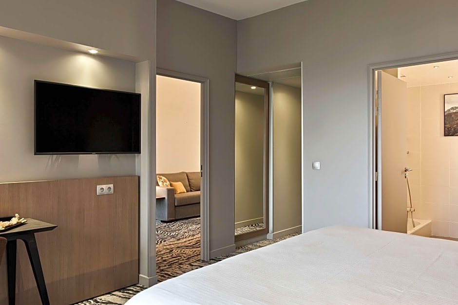 This spacious suite consists of 1 living room, 1 separate bedroom and 1 bathroom with a bath and free toiletries. The air-conditioned suite provides a flat-screen TV with satellite channels, executive lounge access, a coffee machine, a wardrobe as well as city views. The unit offers 1 bed.