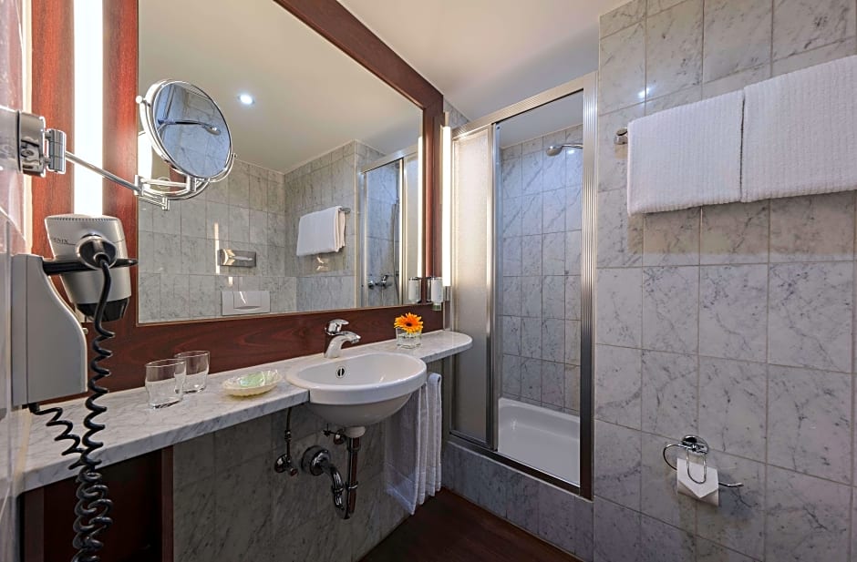The single room has a private bathroom fitted with a shower and a hairdryer. The air-conditioned single room features a flat-screen TV with satellite channels, soundproof walls, a safe deposit box, heating as well as city views. The unit has 1 bed.