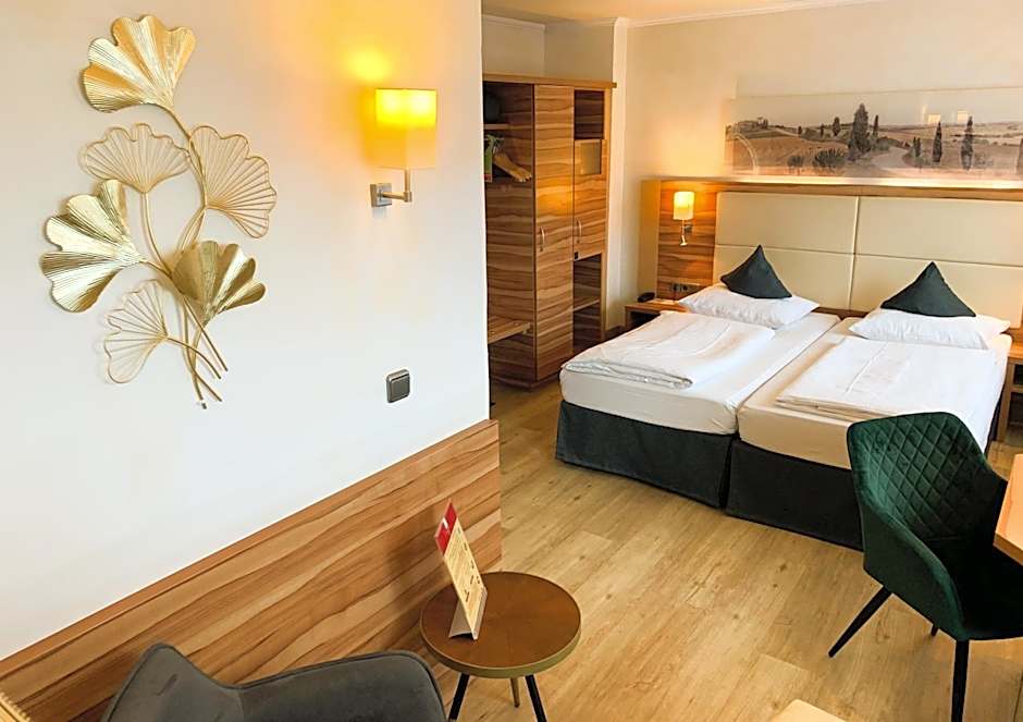 Homelike room with satellite TV, a mini-bar and a private bathroom. Beds are made up of two separate single beds. Please contact the hotel in advance with the ages of the guests so the room can be prepared. Please note that the images shown depict different available triple room types. Guests cannot be guaranteed a specific type in advance.
