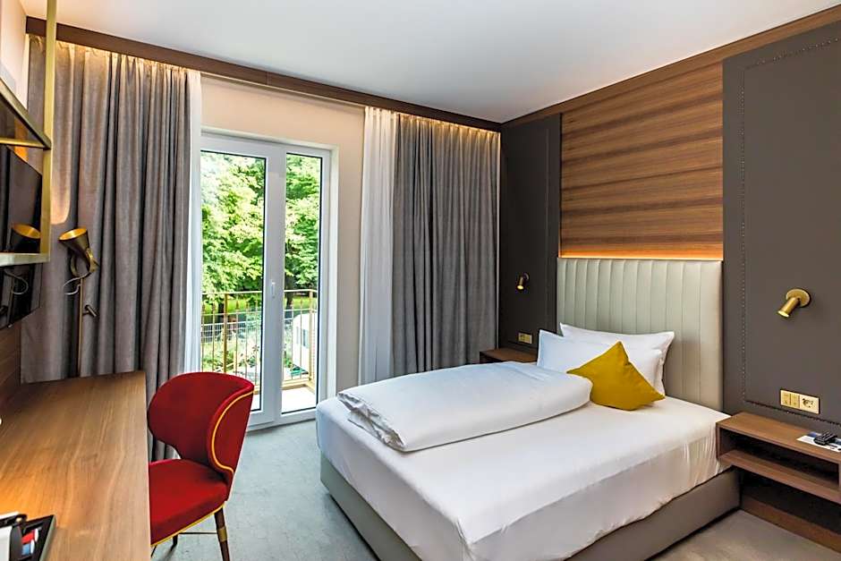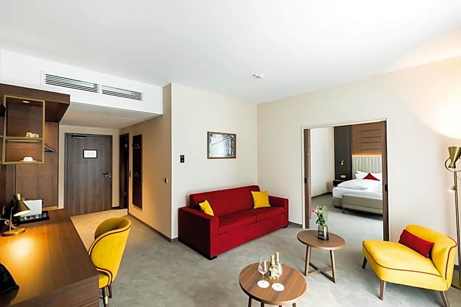 The Hotel Am Schloss Aurich - Schlossresidenz offers a variety of room types. The available options include Double Rooms with Balcony, Deluxe Double Rooms with Balcony, Suites with Balcony, Superior Single Rooms, and Superior Double Rooms. All rooms have a non-smoking policy and accommodate either 1 or 2 adults and 1 child. The bed sizes range from twin beds in the Superior Single Room to queen or king size beds in the other room types.