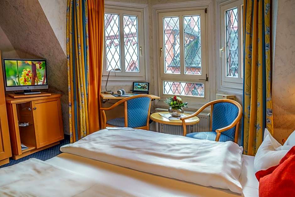 Very nice room with breaksfast nook offering wonderful view of town's scenic main street. Big, comfy bed. Excellent breakfast and dinner in hotel restaurant. Location in heart of scenic town, easy walk from train station, and only a 5-minute walk to either of the two Rhine River boat excursion docks.