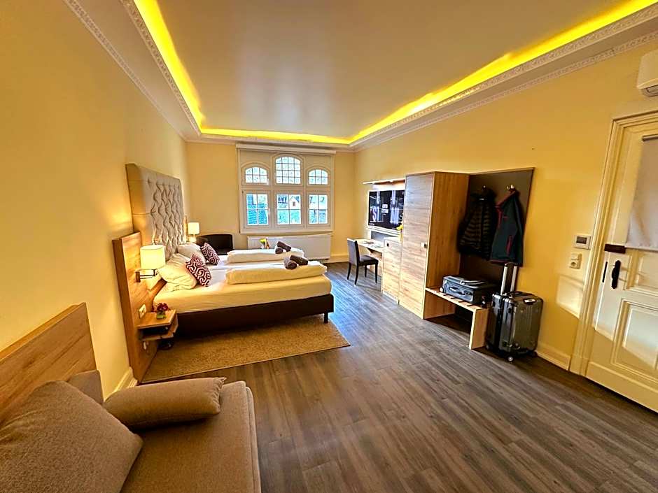 We stayed on the triple room. Super spacious, comfortable and clean. Breakfast was very good. The location can't be better in Bacharach. The views from the room are breathtaking.