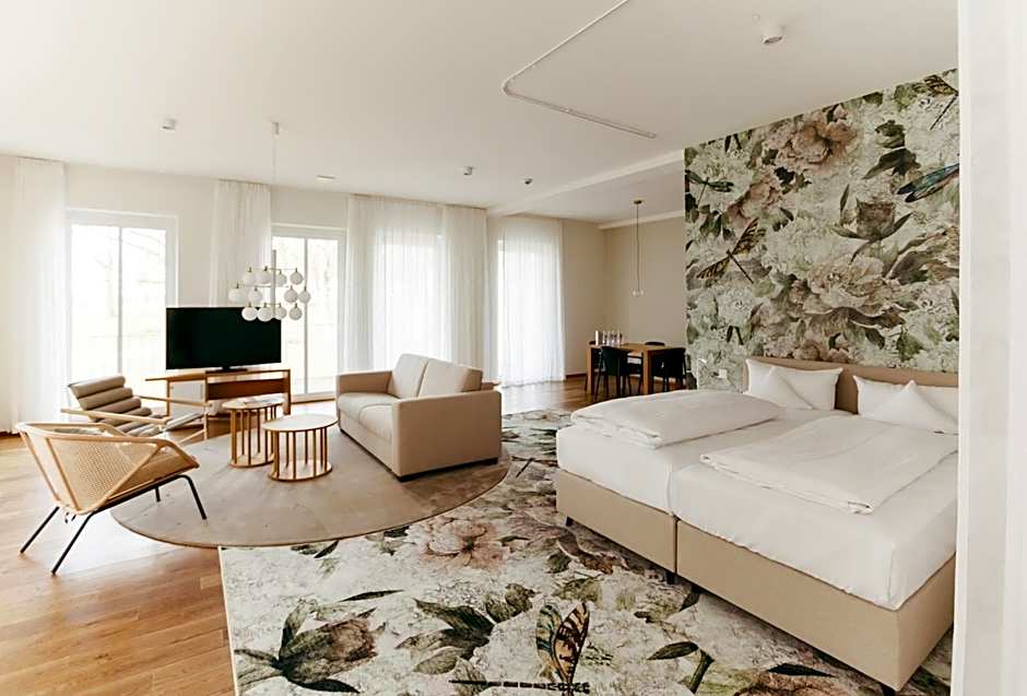 What beautiful location and setting! The hotel created many different seating places widely spread over the huge (!) garden, so one can choose to sit anywhere private or join the more crowded areas. There were also enough seats and beds to cover the guests at the outside pool on a very hot day. We had booked a family room with 2 bedrooms - which turned out to be really spacious and well decorated. Compliments to the kitchen as both dinner as the amazing breakfast were great. Staff was superfriendly hand helpfull.