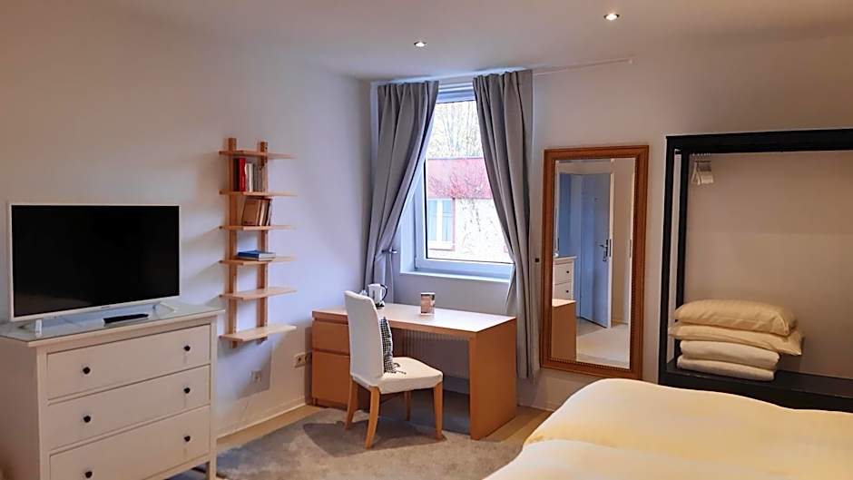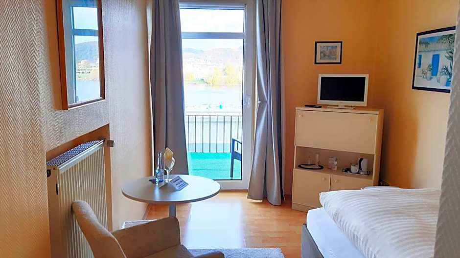We opted for the apartment and so glad we did, loads of space both lounge and bedroom. Both had balcony's overlooking the Rhein. Room was very clean. Breakfast was excellent, lots of choice. Staff were very friendly. We arrived by motorcycle and it was offered that we could keep them in the garage which was very kind however we decided on keeping them outside in the small parking area so not to disturb the owners when we needed to get to them.
