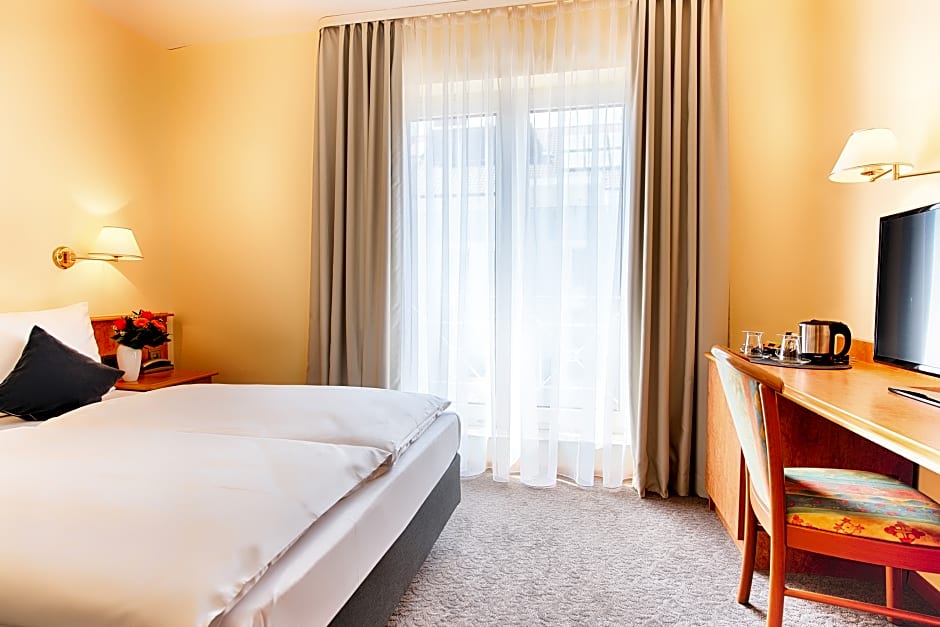 The rooms are a bit spartan, but you are paying for LOCATION! Right in the middle of town, steps from the train station and the lovely Kurpark. We were there for the Würstmarkt and the location was excellent, especially for the price. We didn't think to book the breakfast but were able to add it on arrival - it is extensive and probably cheaper to purchase in advance. We also appreciated fans in the rooms, as they did get a bit stuffy and it was rather warm when we were there.