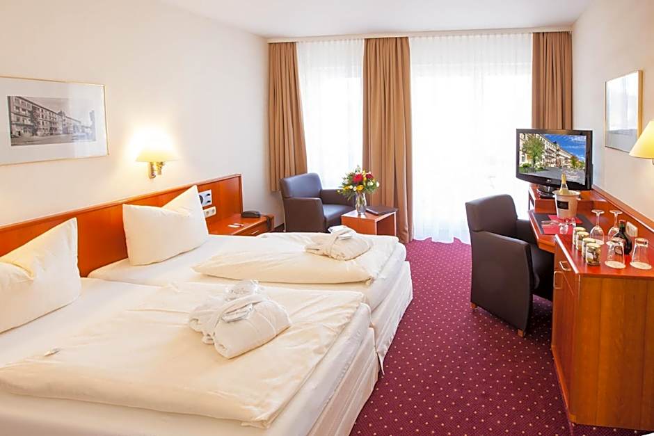 Experience true hospitality at Kaiserhof Victoria with a plethora of amenities at your disposal, including a fitness center, bar, restaurant, business center, and room service. Whether you're looking to explore the city or simply relax in the plush comfort of the hotel, Kaiserhof Victoria offers a delightful blend of convenience and luxury for a memorable stay in Bad Kissingen.