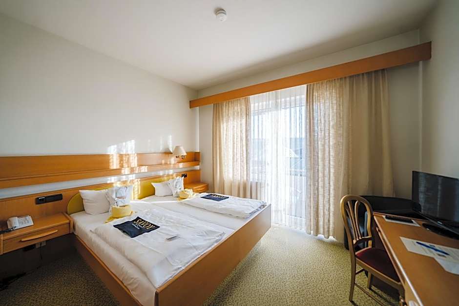 The Savoy Hotel Bad Mergentheim offers a variety of rooms including double rooms, junior suites, and comfort double rooms. All rooms are non-smoking and include queen size beds. The double rooms accommodate 2 adults while the comfort double room can accommodate 2 adults and 1 child. Room sizes range from 215 sqft to 452 sqft.