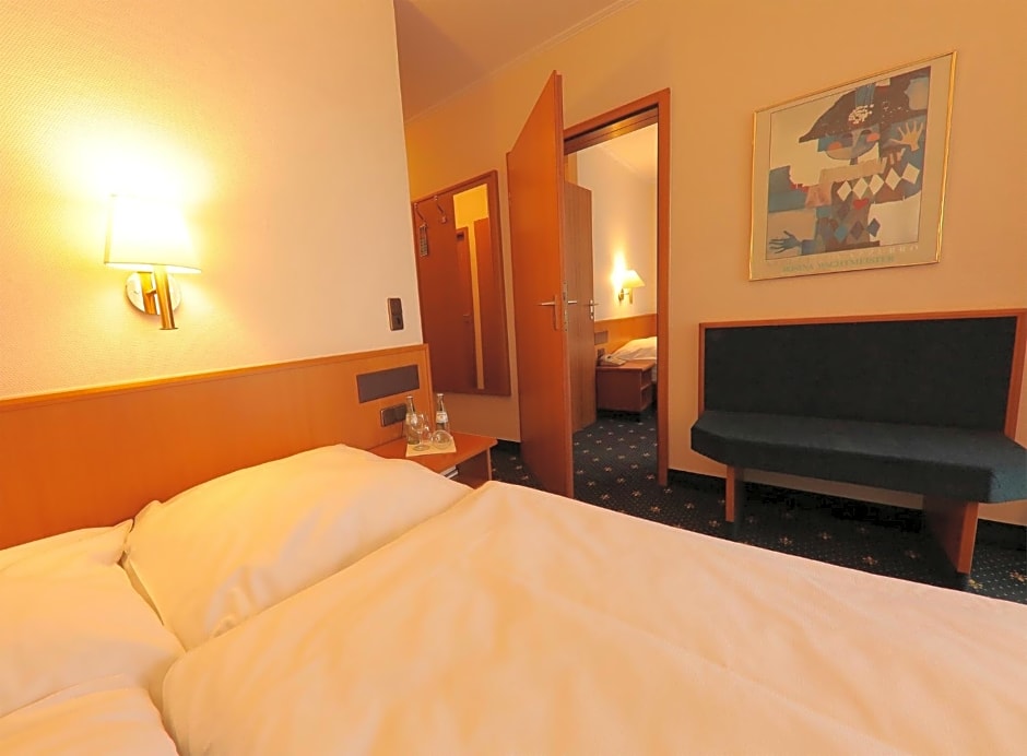 Less than 5 minutes of the motorway the hotel was easy to find after checking on Google Earth 🌎 the carpark entrance between buildings. The carpark gives access to the hotel via a few steps. Receptionist was very friendly and welcoming and I believe I was expected. Every thing I needed to know was clearly explained how to get to the room and how to exit and entry the hotel if I should wish to go to one of the local restaurants later in the evening. The room was very clean and fresh, plenty of towels and hot water. The roon had a little balcony adjoining the room that was nice. Breakfast was offered for the following morning that I unfortunately did not have due to leaving early to continue my journey. Price, location was for me perfect and I think that the town and surroundings have more to offer for family or friends wish to explore the local or see Hanover. Thank to the welcoming receptionist A+ 🌟