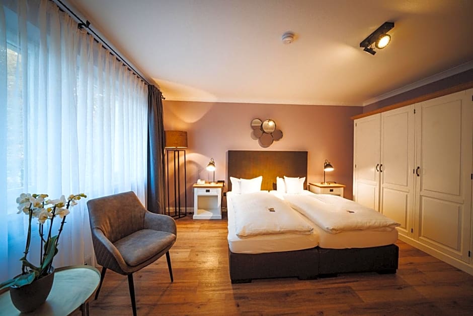 Antik-Hotel EICHENHOF offers Double Rooms and Single Rooms with bed sizes of double and twin, respectively. The Double Room can accommodate 2 adults and has a room size of 194 sqft, while the Single Room accommodates 1 adult with a room size of 108 sqft. Smoking is not allowed in either room type.