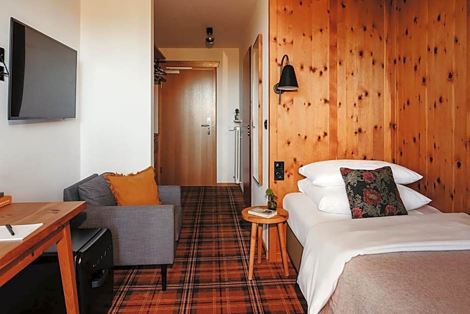 Hotel Bussi Baby offers single rooms, superior double rooms, junior suites, and standard double rooms. The single rooms and standard double rooms accommodate 1 or 2 adults respectively, with the single room having a twin bed and the standard double room having a queen-size bed. The superior double room and junior suite both accommodate 3 adults and have a combination of a sofa bed and a queen-size bed. Smoking is not allowed in any of these rooms. The sizes of the rooms range from 183 sqft for the single room to 344 sqft for the junior suite.