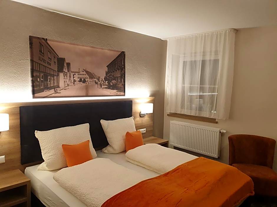 Very good location for a tour using public transport. Voehringen station is a few minutes' walk from the hotel and has an hourly service to both Memmingen and Ulm, with connections to Lindau, Oberstdorf and Muenchen/ Stuttgart and the Southern Black Forest respectively. Restaurant serving excellent food, outside in the pleasant courtyard when the weather permits. Comfortable room with wi-fi, TV and a very good walk-in shower. Helpful staff.