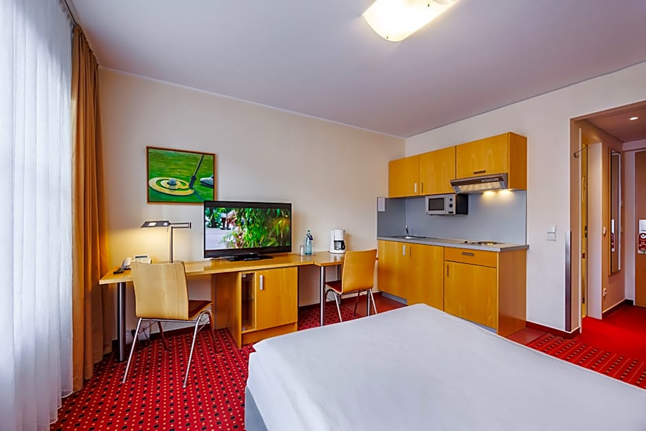 Quiet, spacious & comfortable apartment for an extended business trip. A large grocery store is right across the street, so I could shop for food to cook in my kitchen. Good shower. Comfortable bed. Really close to Adlershof rail stop for easy access to city centre and airport. Friendly staff and very nice breakfast.