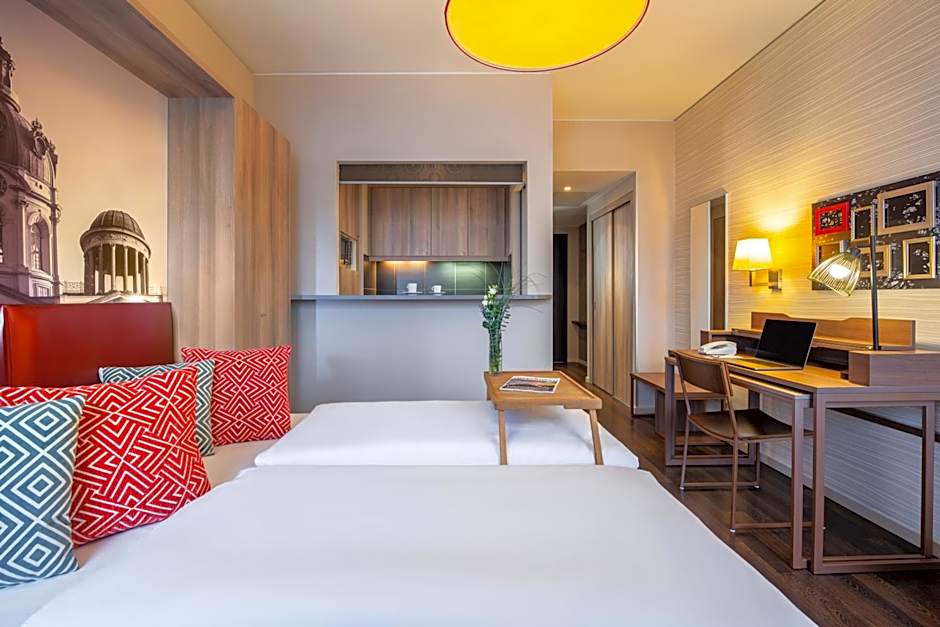 The Aparthotel Adagio Berlin Kurfürstendamm offers One-Bedroom Apartments and Studios. The One-Bedroom Apartments are 484 sqft in size and can accommodate 4 adults and 3 children. They have a sofa bed and a queen size bed. The Studios are 291 sqft in size and can accommodate 2 adults and 1 child with a queen size bed. Smoking is not allowed in both room types.