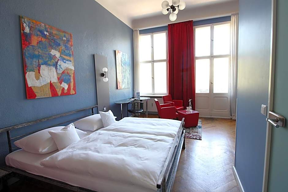 Small boutique hotel taking up the third floor of a beautiful old building situated in the gay district of Berlin. Very convenient location if you're in town for going to gay clubs or bars, as most of them are within short walking distance. You even have a gay bar, shop and club right next door to the hotel. Walking to the closest U Bahn station takes 5 minutes. My room for 2 was spacious and bright, with comfortable armchairs which I really appreciated to be able to rest my feet after long days exploring the city. The ceiling height is massive and the decor of the whole hotel is super quirky and fun! Top marks for cleanliness. The staff is very helpful and gives great recommendations on what to do during your stay. The breakfast was nice, as well.