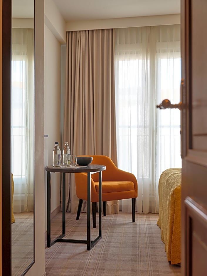The hotel offers a single room for single occupancy, with a twin bed and a room size of 129 sqft. For double occupancy, there are three types of rooms available: comfort double room with a queen size bed and a room size of 215 sqft, premium double room with a king size bed and a sofa bed and a room size of 269 sqft, and classic double room with a queen size bed and a room size of 151 sqft. All rooms do not allow smoking.