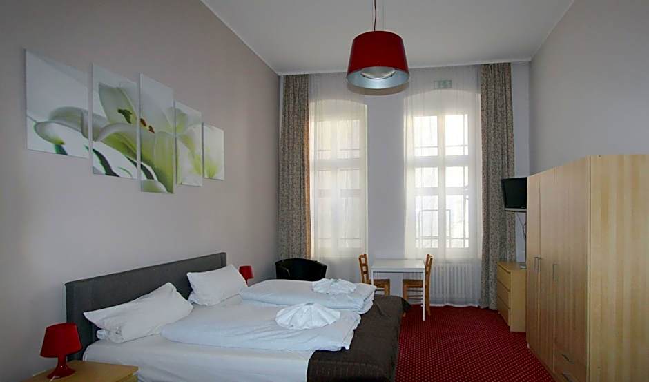 The area has a lot of restaurants around, and even a Lidl a couple of blocks away. It is 2 blocks away from the S metro, and 4 blocks from the U subways, so it is very convenient to go to the center or to Potsdam. The beds were very comfortable, the shower worked really well, the room was quite big and with a window to the internal garden. In 38ºC heat it was still quite cool and pleasant.