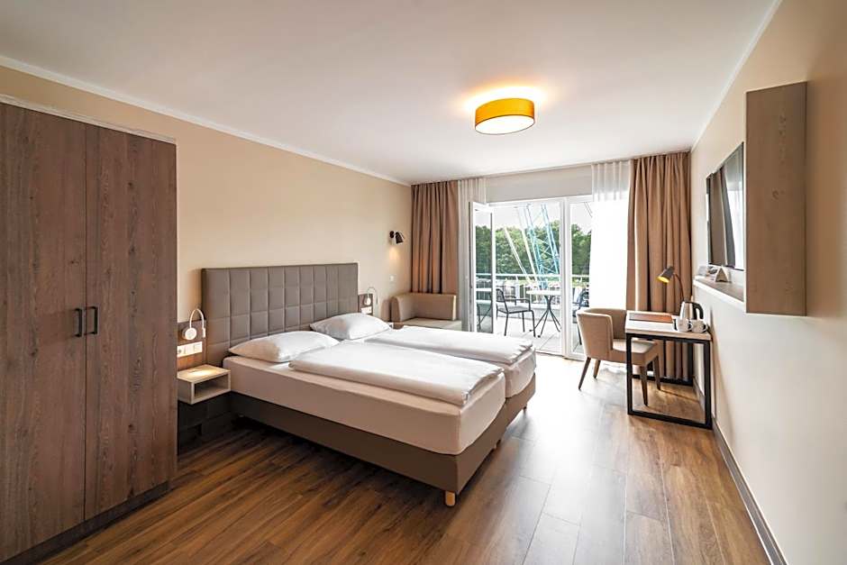 Sitting along the river, Hotel Spree-idyll treats travelers to river- or garden-view moments from a terrace or balcony. Free on-site parking and free Wi-Fi keep transit easy, while the on-site restaurant Kombüse offers Mediterranean, Local, International, and European dishes in a family-friendly setting. A bar beckons for evening drinks, and a sun deck with free beach umbrellas invites lazy afternoons after a day of city wandering. Non-smoking rooms and an elevator add practical comfort to every stay.